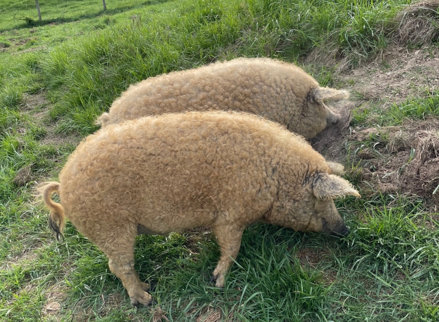 All natural. No antibiotics or drugs. Locally pasture raised. Feed a wholesome diet of freshly ground barley, oats, and alfalfa plus as much forage as they wanted. This is a heritage breed that is renowned worldwide for the quality of the fat, making it the kobe-beef of pork. Read more about it here: https://www.finedininglovers.com/article/mangalitsa-pigs-kobe-beef-pork